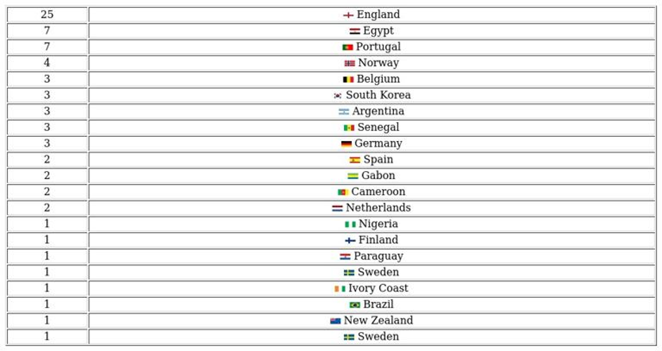 Honorees are selected from various clubs and represent different nations.